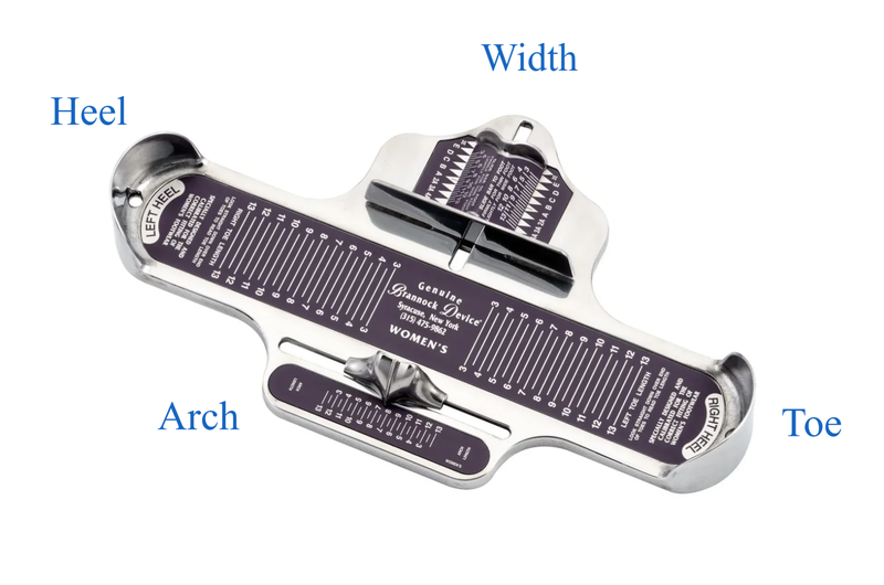 It is important to measure the Arch (1), Heel to Toe Length (2) and the Width of both feet.